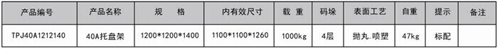 40A型托盤架 產(chǎn)品介紹:本產(chǎn)品主要優(yōu)點(diǎn)是與叉車配合實(shí)用,可充分利用倉(cāng)庫(kù)高度空間。降低倉(cāng)儲(chǔ)費(fèi)用,管理和經(jīng)營(yíng)費(fèi)用。主要用于軟袋子包裝和紙箱包裝物品存放 和顆粒物品存放防止積壓,常用于冷鏈、飼料、塑料顆粒倉(cāng)儲(chǔ)及物流。